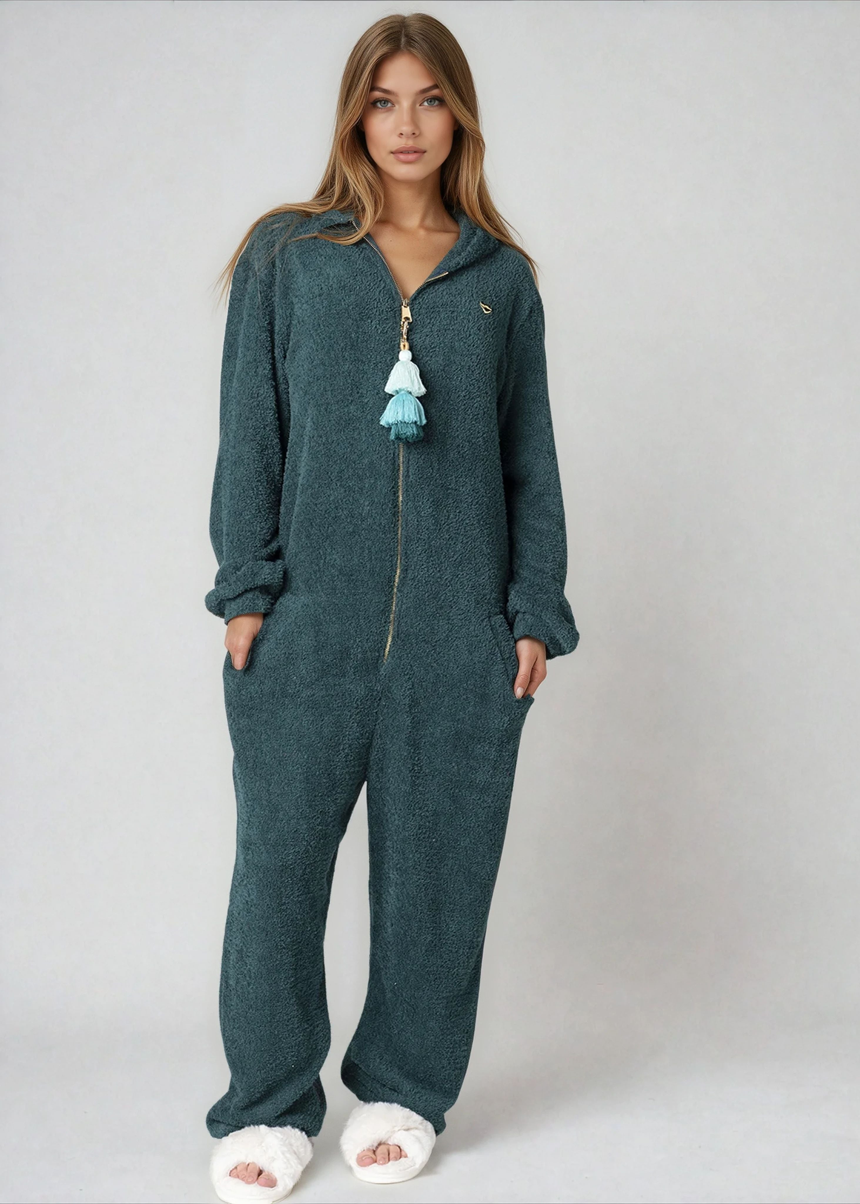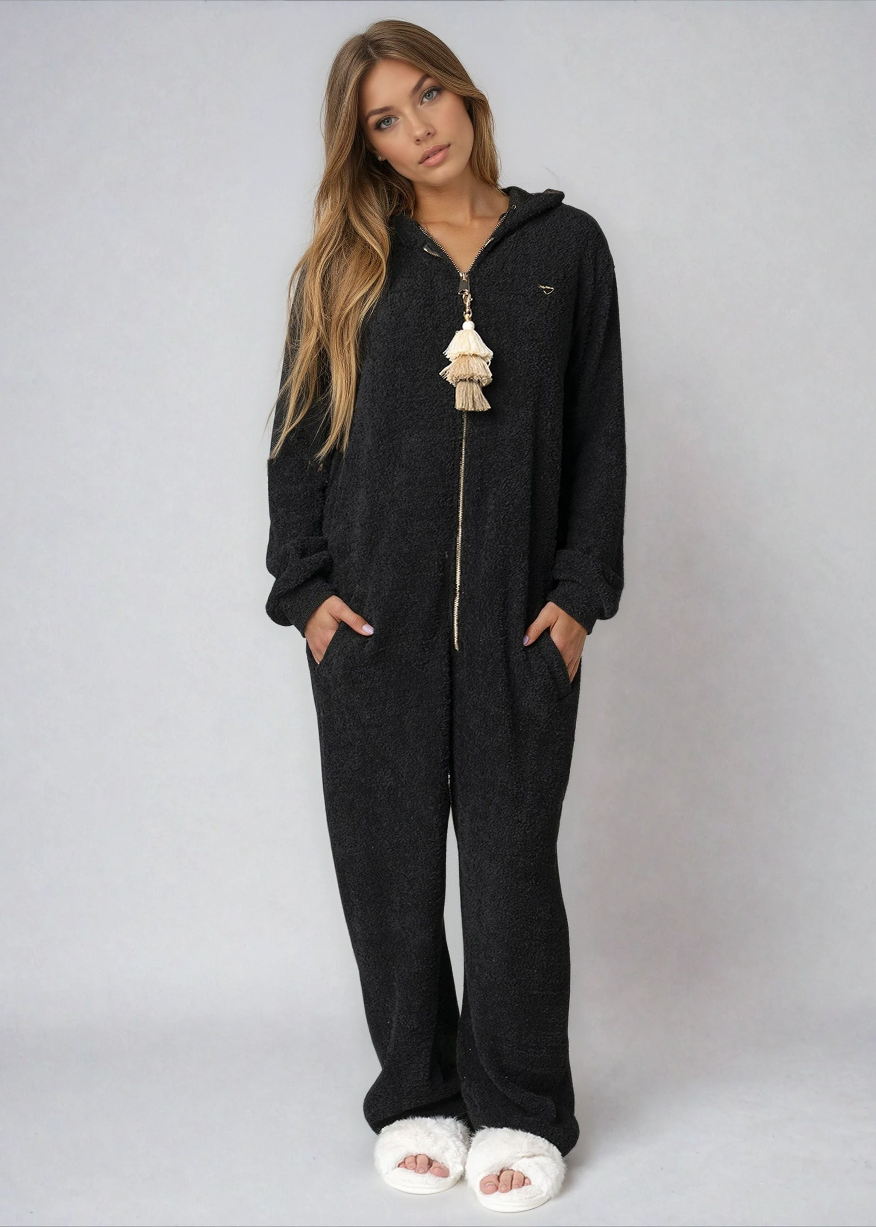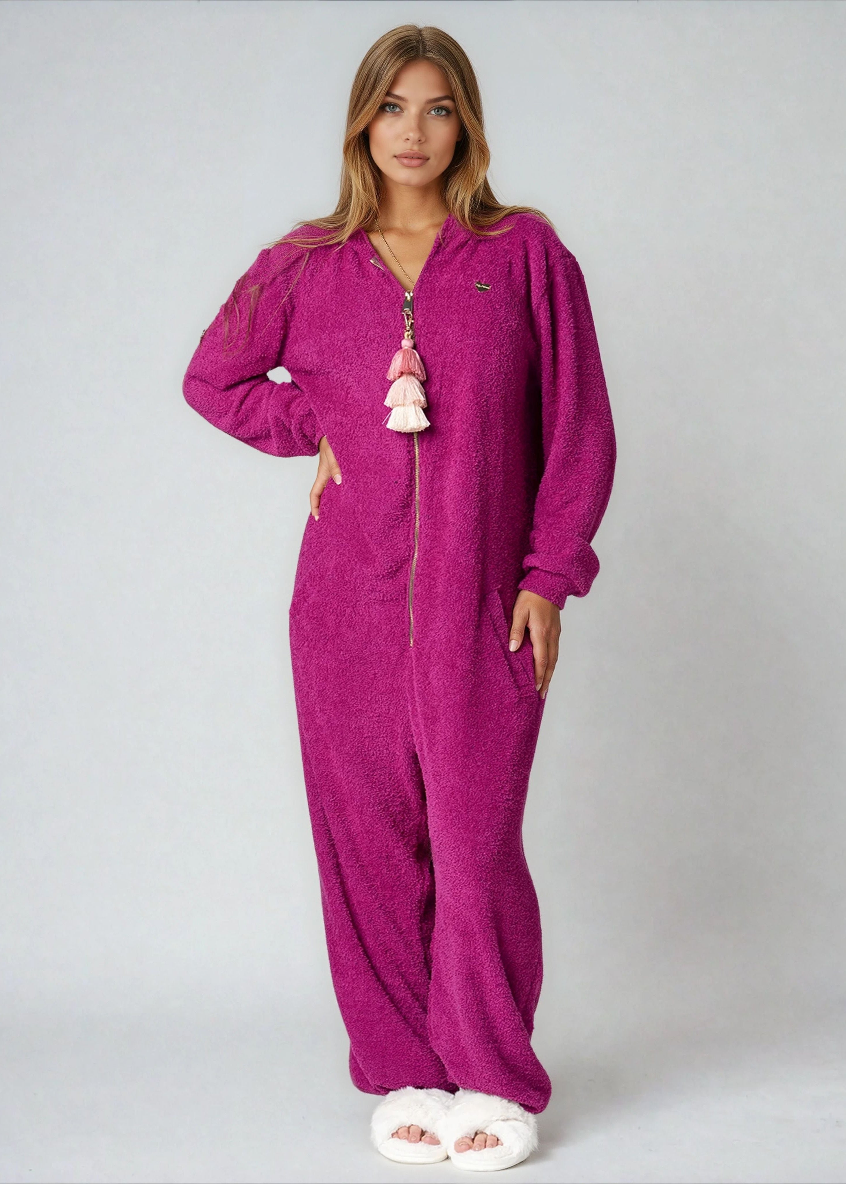 • Features: Hooded One-piece, Long Sleeves, Pockets, and Hood.